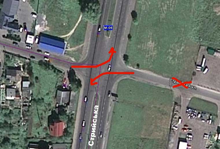 перекресток в рне- с. Сокольники вул. Стрийська можно ли здесь совершать левые повороты с второстепенных на основную?
