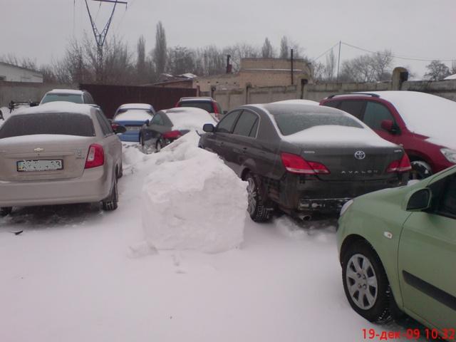 а я купил себе в субботу в мЕтро нейлоновую накидку (полу-гараж) на машину. накрывает верх машины, то есть крышу и стёкла, фиксирует всю эту халабуду 4-ре резинки с крючками по углам. вечером в субботу накрыл машину на стоянке. с вечера субботы до утра понедельника снега насыпало порядочно, на машина "шапка" см 30 была. утром пришёл на стоянку, отстегнул два крючка и лёгким движением руки снял 80% снега с машины. вообщем понравилось нашёл фотку похожего чехла