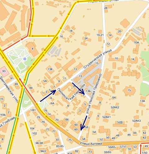 По Студенческой с Артема - только к Форуму можно Выезд из Форума на Артема - по Пимоненко