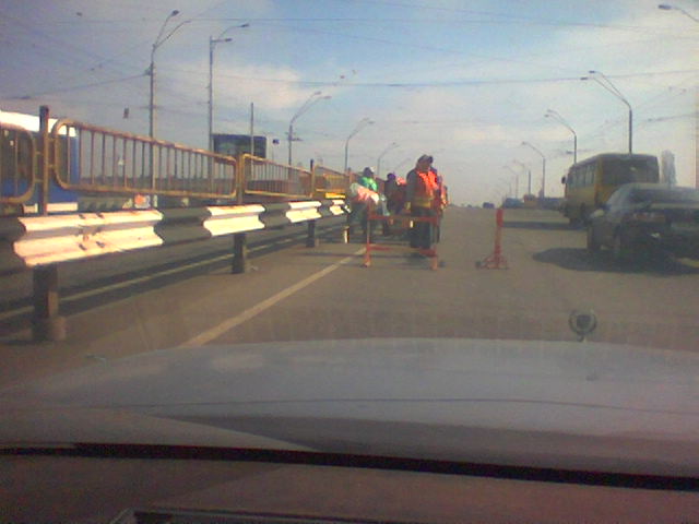 Позавчера еду по проспекту Победы со стороны Окружной. Вдруг на дорогу выходит группа людей в оранжевых жилетах. Полностью останавливают движение, подходят к разделительному барьеру, и начинают ... нет, не ремонтировать, а ПОДМЕТАТЬ! Машины стояли НЕСКОЛЬКО МИНУТ, была парализована одна из основных городских трасс! А потом был блокирован левый ряд! От злости не успел вытащить телефон вовремя и сделать снимок, когда они ПОЛНОСТЬЮ блокировали дорогу. Снял их уже подметающими... Дворники, блин!