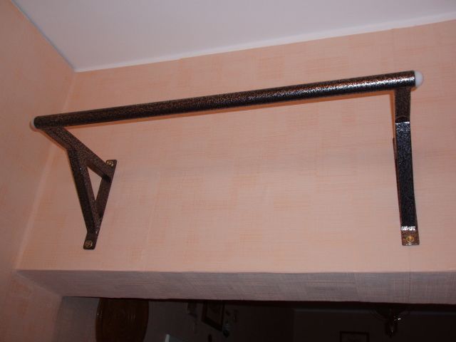 Народ, подскажите плиз, может кто себе делал турник в квартире. Шведская стенка не подходит (места нет), а вот в коридорчиге повыше можно былобы перекладинку организовать. Труба какая для этого дела подойдет? И как торцевые крепежи (к стенам) лучше решить?