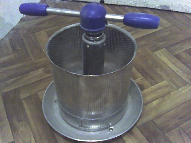 Мені підфартило, я на базарі знайшов влітку чудовий старий радянський прес (б/у) на 5 літрів. З правильної кислотно-стійкої нержавійки 500 грн. Не полінувався сходити в підвал і зняти - фото в приєднаному файлі. Треба тобі щось подібне шукати. До нього ще потрібен подрібнювач. Тобто, спочатку фрукти подрібнюються, щоб порозривати клітинні зв'язки і випустити сік, а потім в прес.