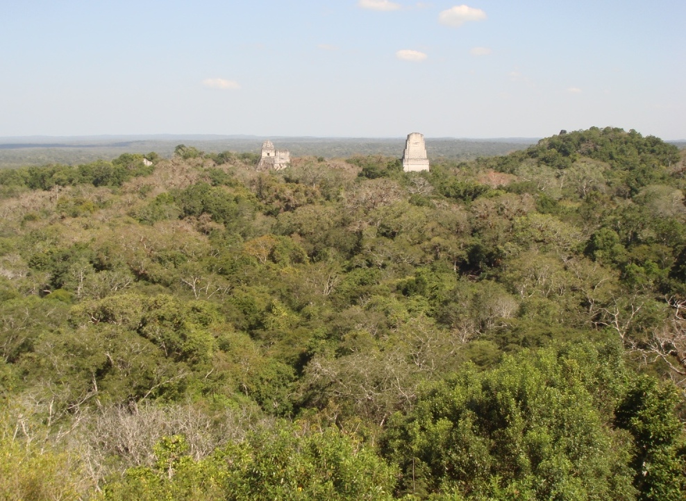 Фотографии развалин дворцов, пирамид и храмов, не дают возможность представить масштаб этого огромного древнего города. Очень хорошо отреставрирована центральная площадь с двумя пирамидами. Именно ОТРЕСТАВРИРОВАНА, а не СОХРАНИЛАСЬ. К сожалению, гватемальским реставраторам еще не известны принципы и технологи восстановления утраченных элементов, поэтому недостающие детали они отливают по месту из легкого бетона, который от жары и влаги за один-два года чернеет и приобретает вид очень древний, а экскурсоводы парят туристам истории о необычайных древних и точных технологиях индейцев. Но две пирамиды (Храмы № 3 и 4 на плане) впечатляют своими размерами. Поднимаясь по деревянной лесенке ты в один момент оказываешься выше верхушек вековых деревьев, и пространство вокруг тебя занимает бескрайняя сейба (джунгли по ихнему). По масштабу с Тикалем может поспорить только Камбоджийский Ангкор-Ват.