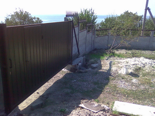 Навес где-то на полметра над воротами будет. Т.е. его длина примерно пять метров.