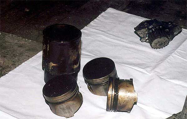 Поршня в целиндрах ощутимо болтались, между целиндром и поршнем, особенно самым последним, считая от ГРМ - можно было свободно вставить толстую спичку или даже две и "пощупать" кольца, да и можно было любоватся кольцами в образовавшуюся щель. На стенках гильз можно было прощупать задиры от поршней. По прикидкам мастеров пробег мотора - чуток меньше полмиллиона КМ.... (на спидометре 230 тыс км)