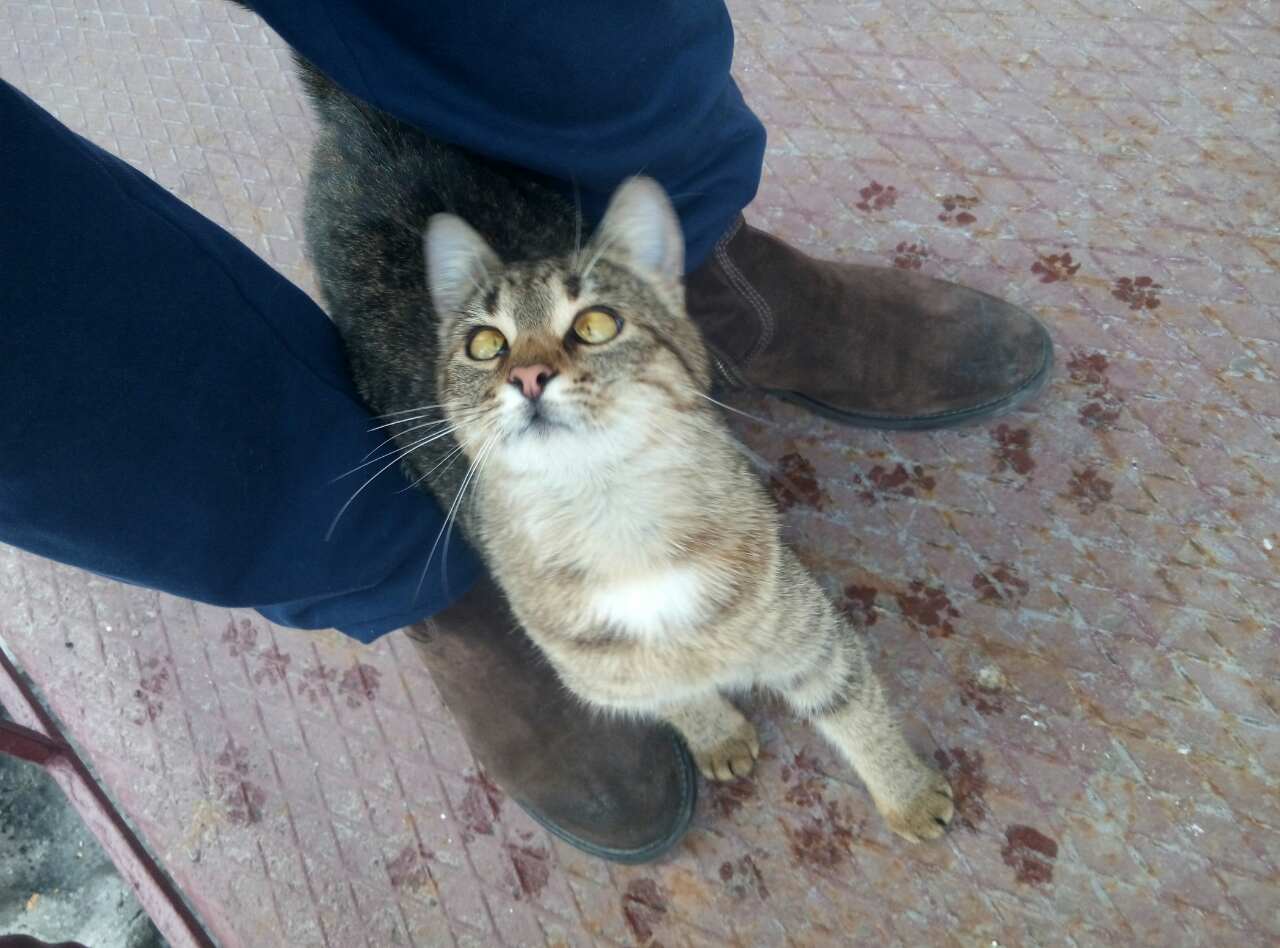 животное не домашнее, на улице встретилось ласковое и приветливое,обтерлось об ноги вокруг.