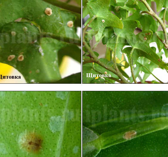 Щитовка скорее всего http://iplants.ru/allvred_1.htm Пшикалки не помогут,только как временная мера,эта гадость живет и в земле.В Эпицентре гранулы продаются,по 4-5 штук в землю.Ну и так как советуют на сайте.