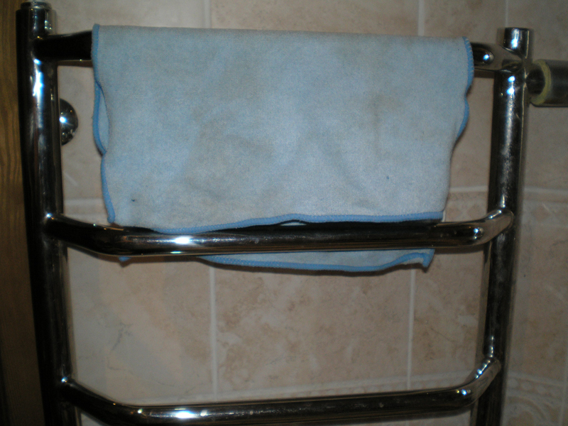 Постирав две пары джинс - одну повесил на балкон, а вторую на полотенцесушитель. Утром снял, вывернул (были наизнанку), одел и пошел. Уже в машине заметил - что на джинсах какие-то пятна... По цвету - напоминают мазут\масло. Вечером пришел, сверил пятна с полотенцесушителем - в местах наибольшего контакта с горизонтальными трубами...