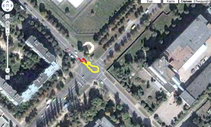 Спасибо всем отписавшимся. Похоже таки реально туплю и разворачиваюсь не там. Просто для окончательного уточнения. Фото перекрестка. Я разворачиваюсь по красной стрелке (вернее пытаюсь по ней, траэктория за счет разворота в 2 приема несколько иная, но расстояние от осевой/середины перекрестка +- соответствует действительности). Нужно делать разворот по зеленой, так?