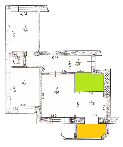 Подробнее см. на картинках ниже. Детали работ: 1) Убрать подоконный блок, сделать выход на балкон 2) Повернуть батарею в другую сторону 3) Убрать часть стены между кухней и залом 4) Убрать стену между кухней и с.у. (сейчас гипсокартон) и возвести заново, заделав старый вход в кухню 5) Убрать стены бывшего туалета и возвести стену между коридором и с.у. 6) Заново провести трубы холодной и горячей воды 7) Заново сделать проводку в с.у. 8) Сделать ремонт в с.у. (плитка, установка сантехники и проч.) 9) Застеклить балкон и сделать ремонт