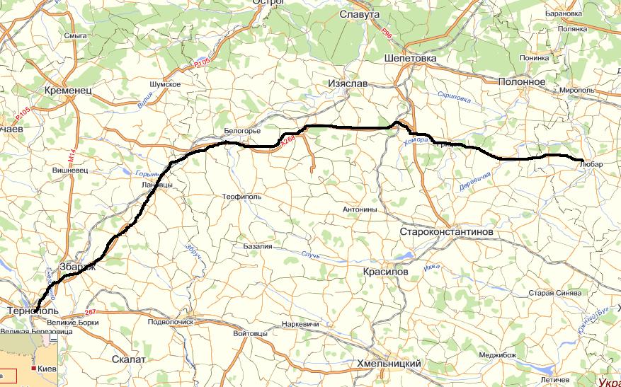 да - именно так. мне рассказывали что есть некая дорога от житомира с выезда на бердычев-винницу до любара - мол ваще без сёл и машин ваще нет - типа быстрее, как-то я не нашел по карте такого прямого решения.. так что нарисованное самое верное. первый раз про эту дорогу узнал от тернопольца регулярно катающегося в киев по делам на своём авто.. а сам первый раз ехал через ровно и дубно...