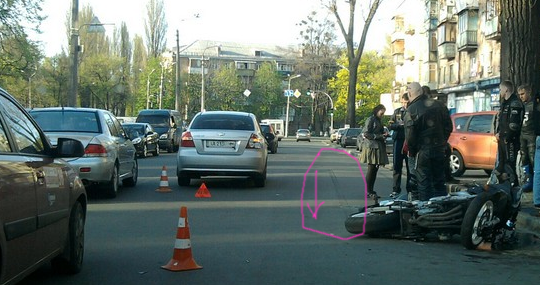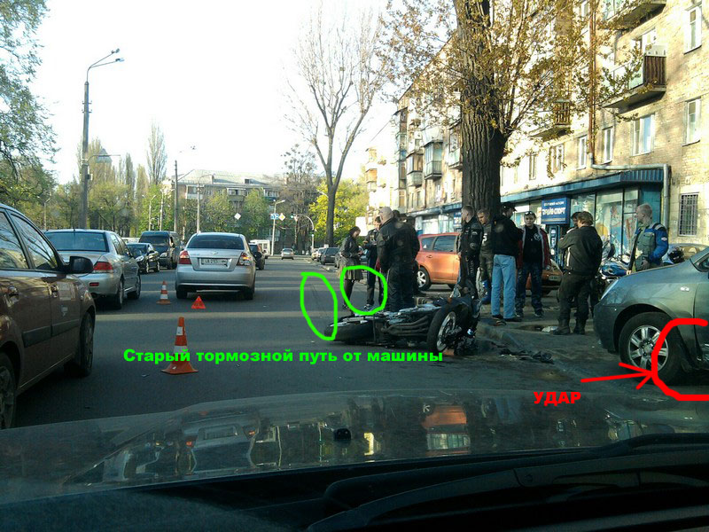 Водитель мотоцикла цел. немного ушибы. Спас шлем и ЭКИП. Морда Ямахи-Фазер разбита, вилке-гаплык. Его ударила при неправильном перестроении Шевроле,ехавшая в левом ряду, с лева от него, от удара мот отлетел вправо в стоявшую машину на бардюре. Скорая и ГАИ приехали быстро, разбирались долго. По-ходу будет суд. Виновник-водитель Шевроле.
