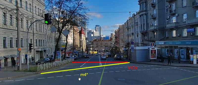 Ок...і ще тоді одне питання...якщо б не було вул.Терещенківської (Т-образне перехрестя).... то Ваша жовта смуга як би виглядала???
