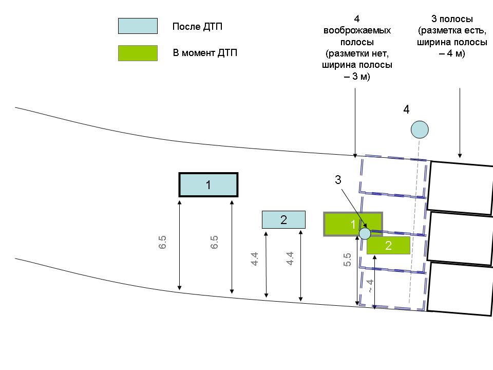 первое что они говорят - это что нет полос, потому сказать кто прав сложно. т.е. не обязательно, что их там три - а вдруг там четыре становится и второе - что кто-то совершал маневр и этот кто-то - Я почему так - для меня остается загадкой