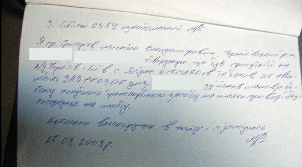 А вот мл. сержант ДАНЕВИЧ ВАДИМ ВАСИЛЬЕВИЧ черниговского взвода ДПС ДАИ - не лоханулся, дописал таки попожжее свидетеля - ГРИГОРЬЕВА МИХАИЛА ВЛАДИМИРОВИЧА, жителя села такогото, улицы сякойто дом 10. Приветеки и тому и другому Писулька свидетеля тоже прилагаеццо.
