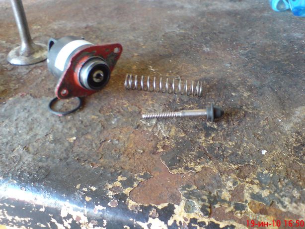 В общем проблема не ушла по поводу «иногда глохнет машина когда заводишь». Покатался я какое-то время – радовался.. Но ж-па пришла неожиданно. Уже 2-3 дня проблема вернулась, симптомы те-же самые, качание педалью тормоза уже не помагает. Иногда машину заводишь – машина заводится и глохнет – танцы с бубном уже не помогают, а можно целый день кататься – без проблем. Причем после того, как проблема проходит (минут 5-10 нужно газовать, курить, дергать провода и т.д.), машина нормально себя ведет, претензий к ней нет. В общем сегодня меня это совсем достало, приехал я в гараж и решил проверить еще раз все. Снимал воздушный фильтр, фишки РХХ, ДПДЗ, регулятора ЦО и т.д. – не помогло. Да, подчеркну, машина НЕ ГЛОХНЕТ НА ХОДУ. Только когда заглушишь и пытаешься завести. Заводится нормально и глохнет. Ошибок нет (чек не горит). Да, очень важно на мое мнение, в очередной раз когда заглох и после танцев с бубном машина завелась и нормально стала работать, я отключил фишку РХХ. Так вот, МАШИНА ВСЕ РАВНО ЗАВОДИЛАСЬ, НОРМАЛЬНО РАБОТАЛА И ЕХАЛА, ПРАВДА ЧЕК ГОРЕЛ. ВКЛЮЧЕНИЕ ФИШИК РАЗНИЦЫ НЕ ОЩУТИЛ, ЧЕК ПОТУХ. Что это ? И почему так ? Ведь не должна была заводиться… Так вот, из последнего поста я говорил о странном свите как-будто воздуха… И вот я решил, когда машина опять начала глохнуть после заводки, снять заглушку (на рисунке обозначено 1). И о чудо, машина перестала глохнуть. Проверил – заглушку ставишь на место – машина глохнет. Причем «штуцер», где снята заглушка, сильно засасывает воздух (палец прилипает к нему от давления). Когда проблема проходит (машина перестает глохнуть после заводки), если снять заглушку – обороты подымаются… Решил снять РХХ и глянуть как он работает.. Снял, поставил на двигатель, включил зажигание – ноль, завожу (чуть-чуть) – ничего, ничего (я не скоростная камера, но вроде бы шток не шевелился), и тут бум и что-то полетело.. Все выключил, смотрю, а штока РХХ просто нет ( см фото). Развалился. Я ох..л.. Еле нашел части, завинтил обратно, собрал, пытаюсь руками отломать – держится, опять проверяю, опять бум – штока вместе с пружиной нет. В общем раза три проверял – результат тот же, шток вместе с пружиной вылетает. Я конечно не знаю, но вроде бы такое поведение ненормально… Может так нельзя проверять РХХ ? Фото прилагаются Интересно узнать Ваше мнение.. Я так понимаю, РХХ под замену ? Что скажете ? Заранее спасибо..