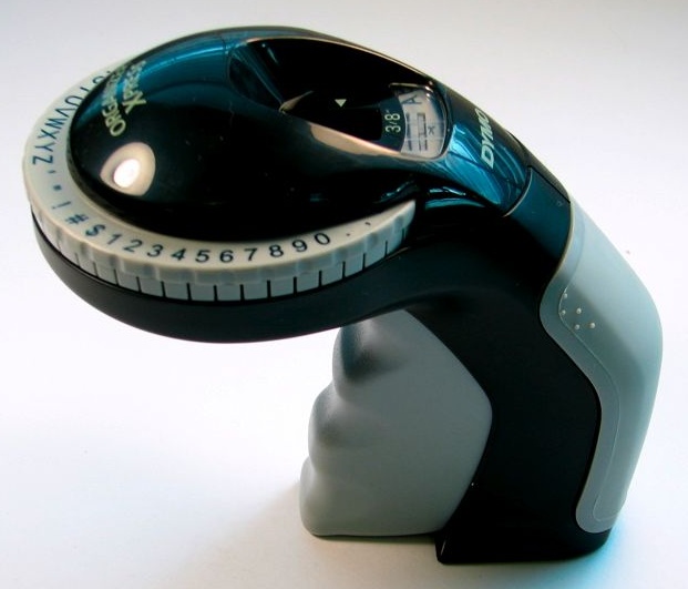 Например, ручной принтер DYMO Label Buddy Embossing Labelmaker или подобный.