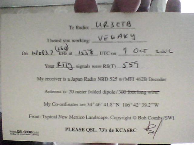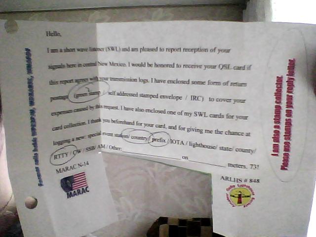 Да, Андрей, QSL интересная, амиго не поленился и не поскупился на директ! Выложу своего SWLа, ето у меня единствнный SWL из NA) При получении такого конвертика приятно было осознавать что ме щрп на веревку, слышет дядько на 20м провода в пустыне Нью-Мехико))