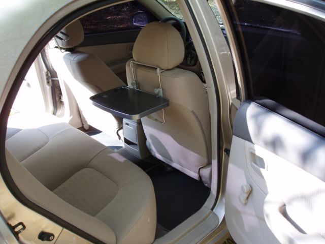 В ашане, атл и тп есть такие пластмассовые полочки, вешаются как вешалки, на шпильки подголовников, легурируются по высоте, наклону, кажется. Стоимость какая-то смешная.