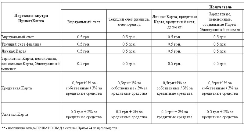 Почему не пытался, общаюсь с 13:00, ссылаются на это. Но там Перевод между "своими" счетами, Зарплатная карта, пенсионная, социальная карта, Электронный кошелек*, под *При нецелевом пополнении зараплатных, пенсионных, социальных карт, выпущенных ПриватБанком ,с получателя средств взимается комиссия в размере 1% от суммы платежа.