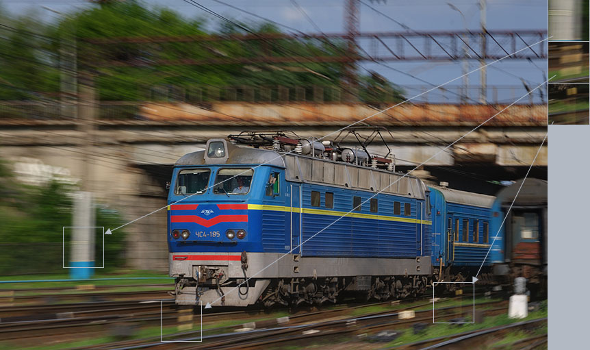 Но тут - поезд движется совсем не в том направлении, которое нужно, чтобы те линии оказались резкими.
