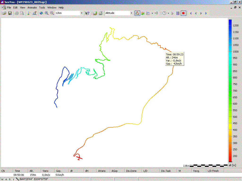 Можешь скачать програмку СиЮ на их сайте (безплатно), а я тебе сброшу трэк. Но програмка на автомобильная а летчицкая - вместо машины быдет самолет .. а если бы была трехмерная карта Крыма, то програмка бы наложила это на карту - тогда вообще сказка.
