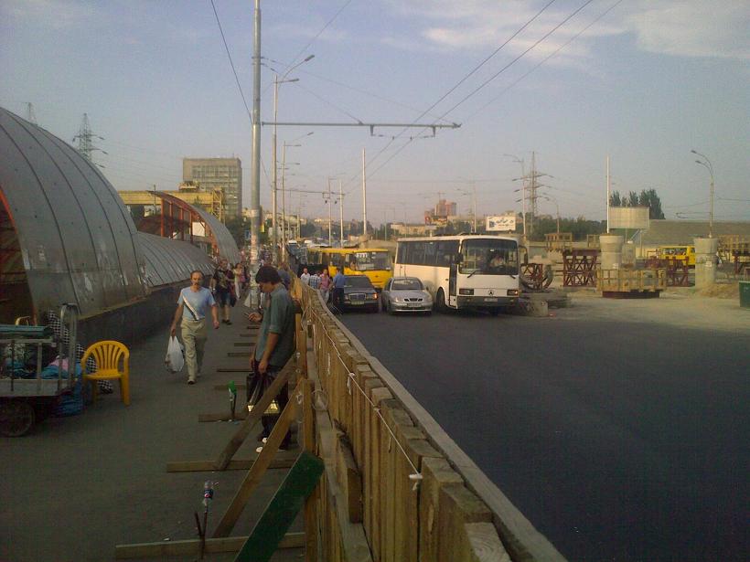Угораздило меня вечером залететь на московскую площадь, проторчал минут 40, пока не увидил 3 машины, которые притерлись на выезде из самого узкого места в сторону Голосеево. Не знаю, как троллейбусы там проезжали, но места, похоже, было тютелька в тютельку. Как они на 2 метра раньше не столкнулись... Видать, жара расплавила кому-то глаза