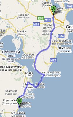2. Дорога на нижней карте, после того как свернешь с трассы Одесса-Рени, будет не очень.