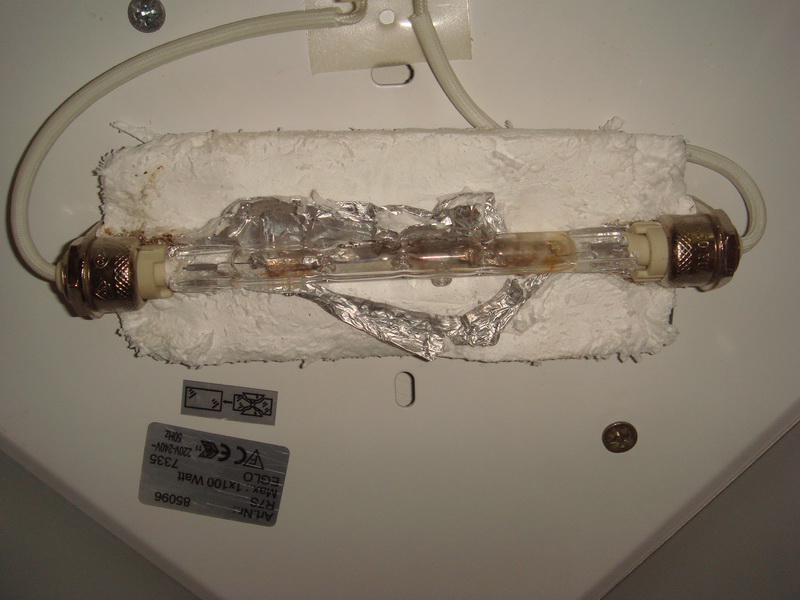 Слушай, реально стрёмно выглядит. Я бы поменял сам светильник. Эти лампы меняются сдвигом по продольной оси лампы, где-то на пол см. - тогда вторая сторона гуляючи выходит. А это первая замена? Мне ОЧ.не понравилась фотка Какая-то облезшая фольга, пенопласт и это в непосредственной близости к галогенке Если таки решишь оставить ЭТОТ светильник, то убери пенопласт, цоколи лампы подпружиненные - возьми КАРАНДАШ(что-нибудь токонепроводящее) и разработай пружинки, что бы они свободно ходили - с двух сторон. Если не в курсе, то эти лампы руками хватать нельзя. Если уже облапал, то протри спиртом. Удачи