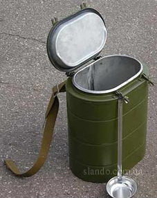 армейские не подойдут? .... Термоса пищевые (для переноски и кратковременного хранении горячей) Состоят из бачка с нержавеющей стали емкостью 12 литров. Термоизоляция - воздушная прослойка. Время поддержания температуры пищи от 90 до 50 С, час. - 6 часов.