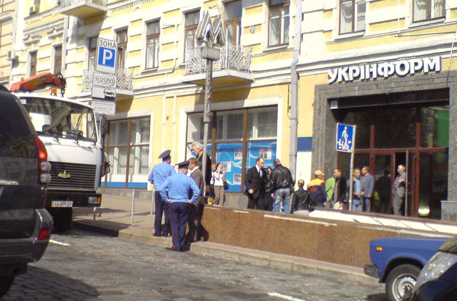 Уже видел тему про тойоту, котору забрал эвакуатор. Сегодня был затруднен проезд по ул Б.Хмельницкого - эвакуатор забирал белую таврюху-пирожок с законного паркованского места напротив проходной Укринформа (Б.Хм. 8/16). При сем присутствовало много людей, парковщик и два мента в фуражках (!) с офицерскими погонами.