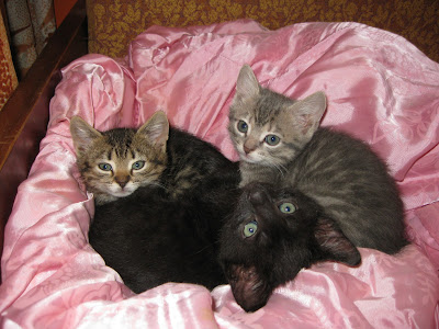 Три зайчонка: тигрово-полосатая девочка, дымчато-полосатый и чёрный (без единого пятнышка)малыши - ищут хозяев. Котята ухожены, проглистогонены, приучены к лоточку, непривередливы в еде, очень игривые и ласковые. Сейчас им 7 недель, как раз самое время отдавать. Спокойно переносят дорогу в корзинке, любят природу/дачу. Кому надо пушистый комочек счастья в дом - обращайтесь плз в личку.