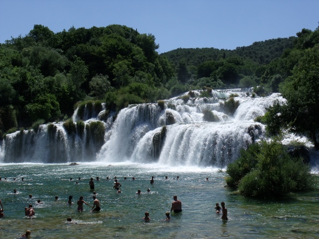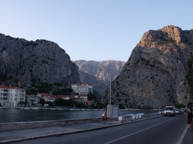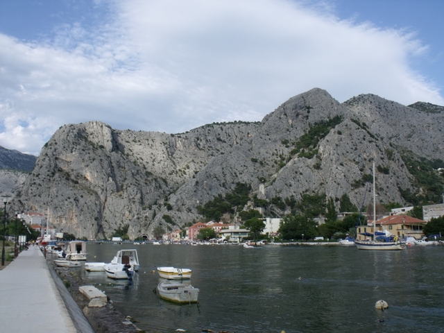 Продолжаю. Еще немного про одиннадцатый день. В Дуче мы приехали после трех дня, поселились в наши апартаменты, которые нас устроили. К морю от дома идти было совсем близко, только резко вверх, я даже сначала боялась, что машиной мы под таким углом не поднимемся. Пляж здесь в отличии от Водице был песчаным. На берегу росли небольшие деревца, под которыми все старались занять места. Потом по нашим наблюдениям выяснилось, что народ оставляет свои коврики и полотенца под деревьями рано утром, идет домой кушать, а приходит значительно позже. И никто не трогает чужие вещи. Очень много было отдыхающих немцев, наш хозяин-хорват тоже уже больше 20 лет живет в Германии. Также здесь не было морских ежей, а поэтому мало кто купался в тапках. Мы свои тоже брать перестали. Двенадцатый день. Решили совершить вылазку в Омиш, он от Дуче находится в 3 км. Пошли пешком, только не очень удобно, потому что идти можно только вдоль трассы. Горы в этой части Хорватии очень красивые, особенно интересно смотрится устье реки Цетины.