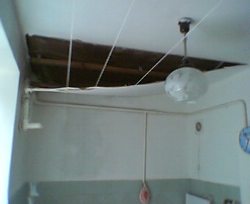 на потолке обічный гипсокартон , отвалился лист и повис на бельевых верёвках ... жеку всё пох...похоже буду ремонтировать всё сам -->
