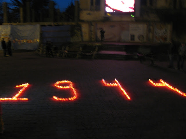 Несколько молодых людей зажгли свечи. Акция приурочена к освобождениею Ужгорода и Украины от фашистских захватчиков. 27 октября 1944 г. был освобожден Ужгород, а 28 октября – Украина. Было видно, что ребята это сделали по своей инициативе, а не из под палки. Приятно.