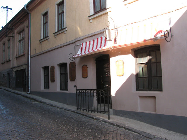 Кафе – музей. «Под зАмком». На doroga.ua его нет. Адрес - Ужгород, ул. Ольбрахта, 3. В районе бот. Сада. 5-7 минут хотьбы вниз от замка. Меню в кафе нет. Официант просто рассказывает, что у них есть. Цены называет, если спросить дополнительно . Цены низкие. Внутри собрана куча всякого барахла . От дорожных вывесок, утюгов и умывальника до стоящего в конце зала мотоцикла. Прикольное заведение.