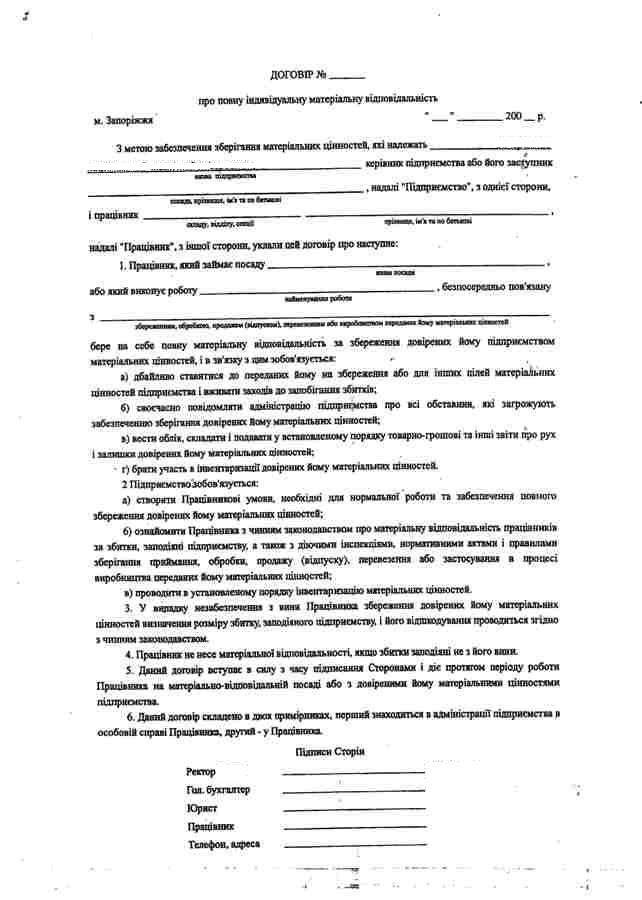 6) відповідно до законодавства на працівника покладено повну матеріальну відповідальність за шкоду, заподіяну підприємству, установі, організації при виконанні трудових обов'язків;