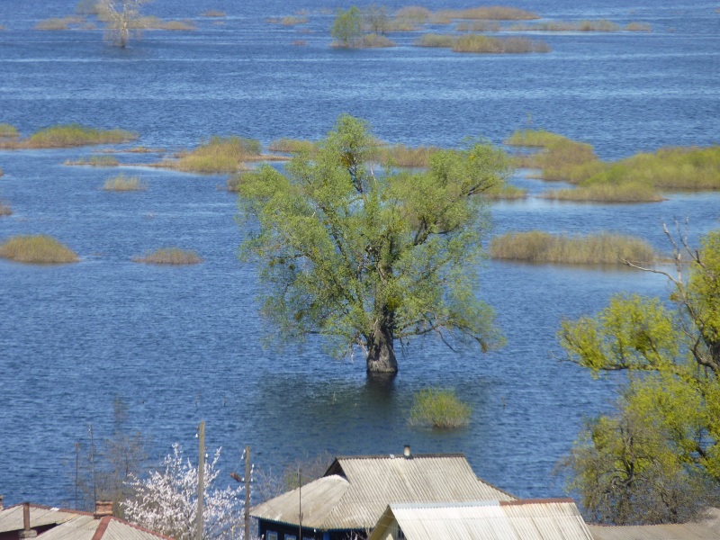 Абориген - экскурсовод рассказывал, что во время разливов рыбу ловят, используя заборы в качестве сетей. Рассказывал летом, я посмеялся про себя. Весной посмотрел на то, что на фото, и решил, что наверное зря не поверил.