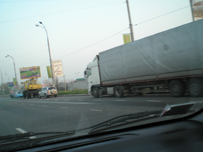 Неа.Он с третьего ряда пытался зайти в поворот.Не вышло,зимняя Тойя подвела.Я за ним сзади ехал,метров 50,во втором ряду.У меня перед носом прошелестел.Пока стали,он сам вылез из машины.Черкаский,не знает наших особенностей.В Черкасах трехполосок нету,акуел и растерялся.Повезло,что на излете бил.Я уже давно заметил-приезжие в большинстве в левых рядах ездят.
