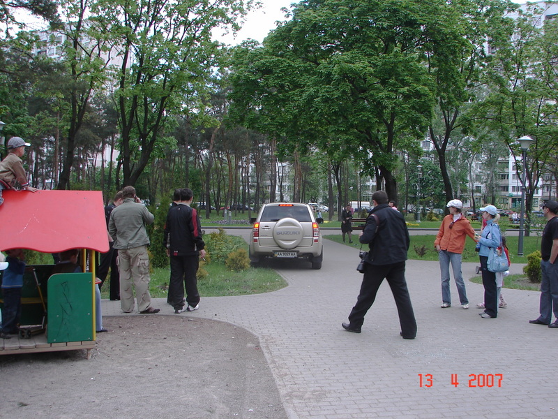-Мабуть народный мститель дежурит в парке Цитата,2007 год: "Пьяный водитель джипа Grand Vitara AA 90 59 AA проехал через ДЕТСКУЮ ПЛОЩАДКУ С ДЕТЬМИ ...в парке Победы /Киев/!!! На счастье из детей никто не пострадал. Родители детей оправившись от шока, не успели вытащить и растерзать подонка ....разбили лишь боковые стекла его машины. Кто из власть имущих имеет возможность заставить урода на джипе горько пожалеть о своем рождении на свет.... " ссылка- страница