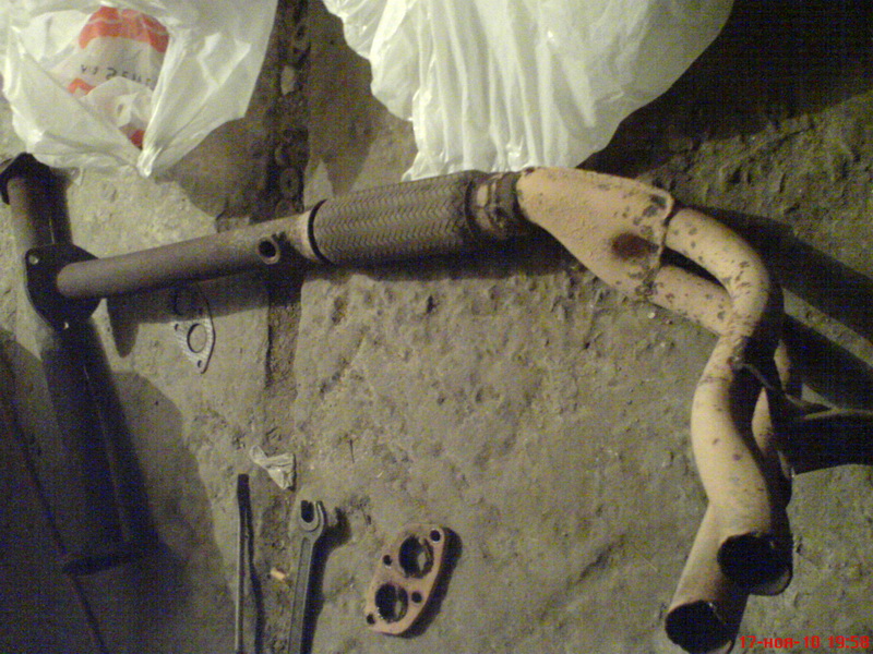 Новые "штаны" имели на конце шаровое соединение и чтобы его не терять в процессе поиска была обнаружена на авторынке труба переходная с уже ввареной гофрой, что есть хорошо. Сохраняется разьемное соединение в виде шарового фланца и наличиствует гофра для смягчения вибраций.
