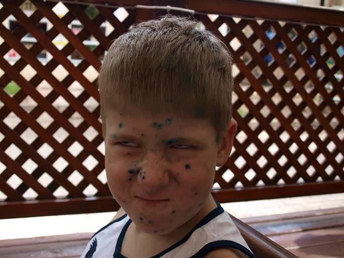 Боже ж ты мой, за что такую некрасивость оставлять ребенку (я о фото)? У меня есть фото, где Кате измазан рот и пальцы зеленкой в качестве воспитательной меры (чтобы пальцем не сосала). Тогда фотографирование в назидание потомкам дало свой эффект - стала гораздо меньше сосать. А тут на бедную больную девочку просто обидно смотреть.