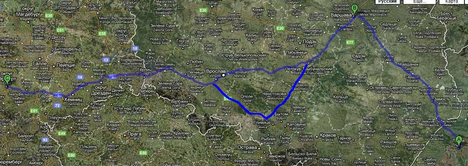 Камрады, посоветуйте по какому маршруту легче и быстрее ехать со Львова в Эрфурт через Варшаву.