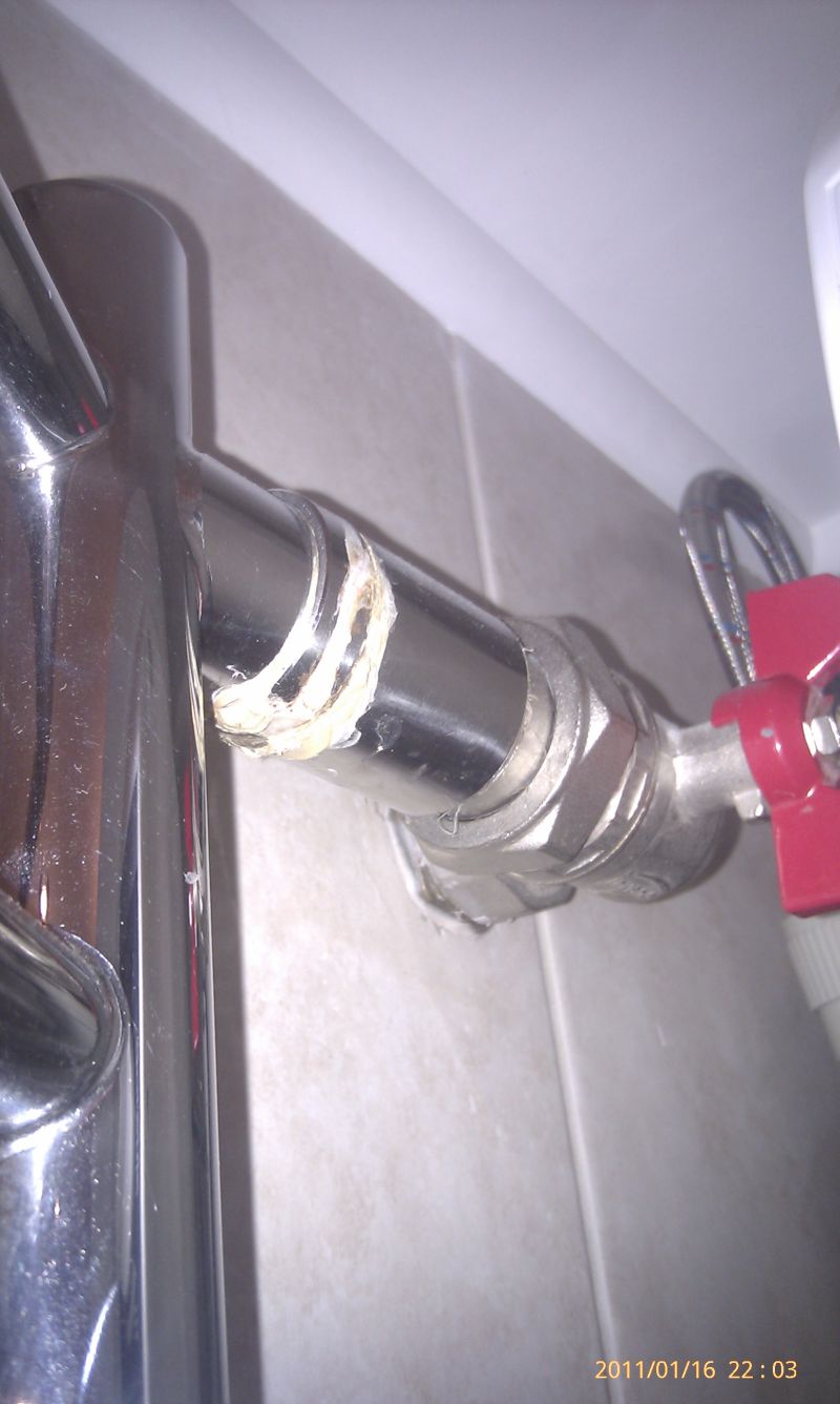 Маємо: почала текти вода з сушки для рушників. Ну - не текти, а капати. Потім нібито перестала, потім я на літо взагалі відключив її. А тепер спробував пустити воду - капає дуже суттєво. Кран у мене свій, перекрити можна легко. Але підключено чере подовжувач-"бочку", яку відкручувати/закручувати треба спец інструментом (там всередині 6 граник потрібен, велиииикий). Проблемне місце - на фото. Буду вдячний за контакт сантехніка, який прийде, демонтує сушку, нормально все ізолює і поставить на місце. Або за інструмент в оренду
