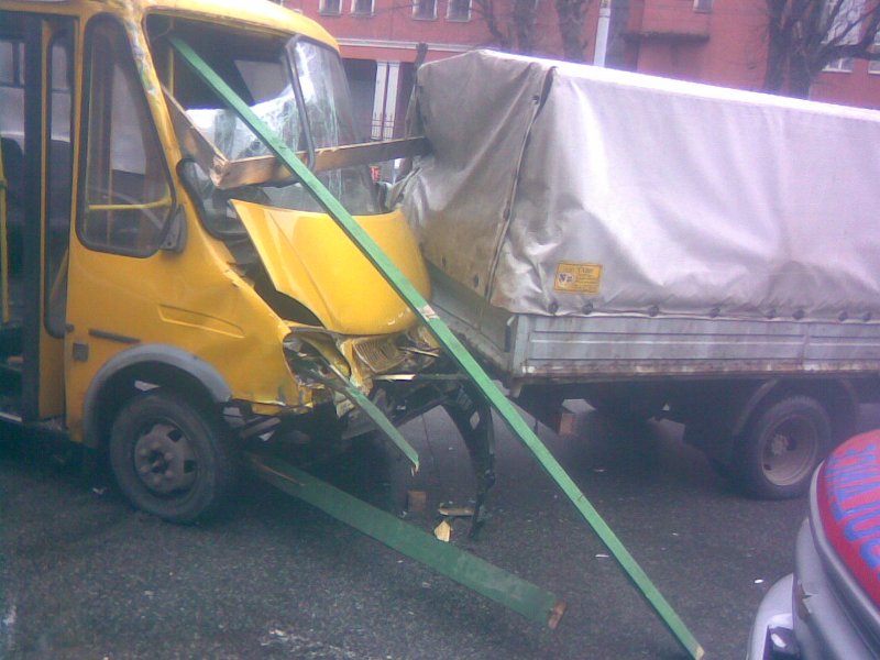 .. произошла минут 10 назад напротив ведущейся стройки Судя по расположению авто- маршрутка сбила ограждение для пешеходов, выставленное стройкой для прохода пешеходов, и въехала в грузовую Газель, которая в свою очередь разбила зад Опелю и задела двигающуюся слева ТАЗ. Опель догнала Витару... Много битого стела, на моих глазах скорая помощь увозила раненого.. Кстати, видел как скорая проезжала с сиреной перекресток Саксаганского и Толстого. Думаете, кто-то ее пропустил? фото в приложении