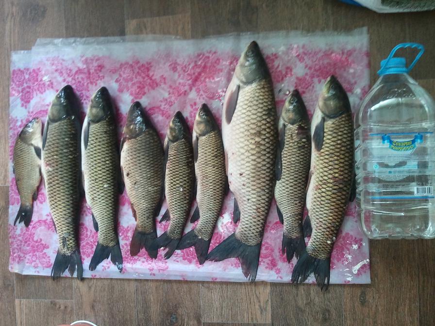 Первая 8 карасей и 6 карапчуков грамм по 800. Вторая в прошлую субботу 2+2. Сегодня 1 карасик сам оделся на крюк и 9 карпиков от 1,5 до 0,8 итого 9кг. 4 схода (в корчи заводил). Сегодня очень резкий после подсечки карп, давно такого не помню. Ловил на гуковскую кукурузу(ваниль), она плотнее обычной и карась не сбивает с крючка.