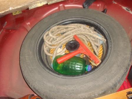 Хлам чудесно поместится и в перевёрнутой запаске: