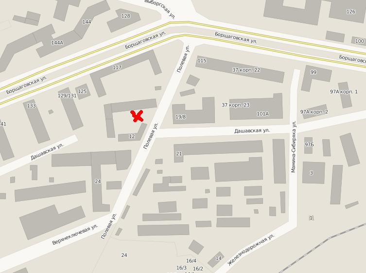 До Полевой 24. Стоянка - это Полевая 12. Где красный крест нарисован....
