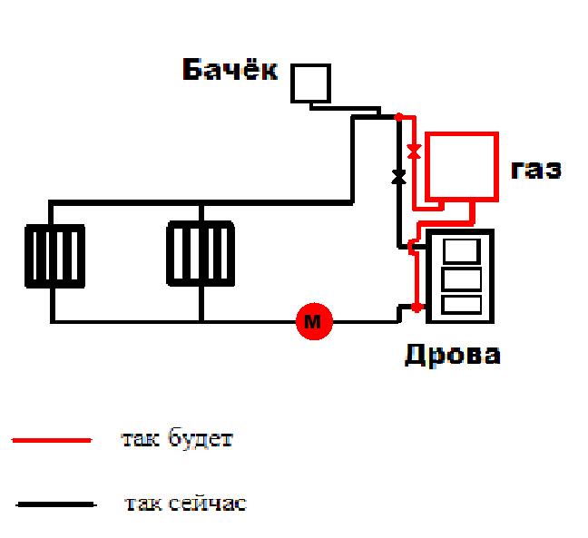 как правильно это всё развести имея мой твёрдотопливный котёл и дополнительно поставить газовый