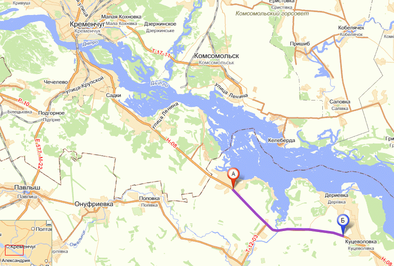 Да, это самый худший участок, остальные можно считать нормальные. Когда туда ехал, то почти совсем не было никакого транспорта, даже удивляло что такие свободные от машин дороги. Но в Куцеволивке стояли менты и меряли скорость, и в ней дорога очень плохая. Когда ее проехал в сторону Днепропетровска, дорога стала гораздо лучше. Фуры были, но чаще какие-то камазы.